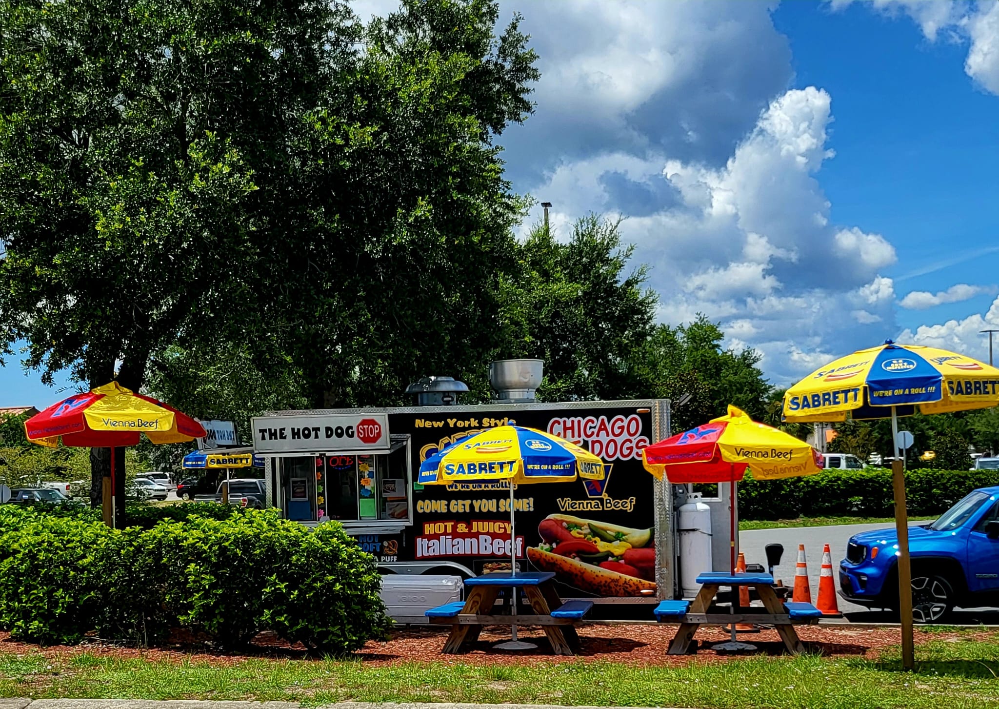 Chicago Toppings:  relish, raw onion, pickle, sport peppers, tomatoes and celery salt